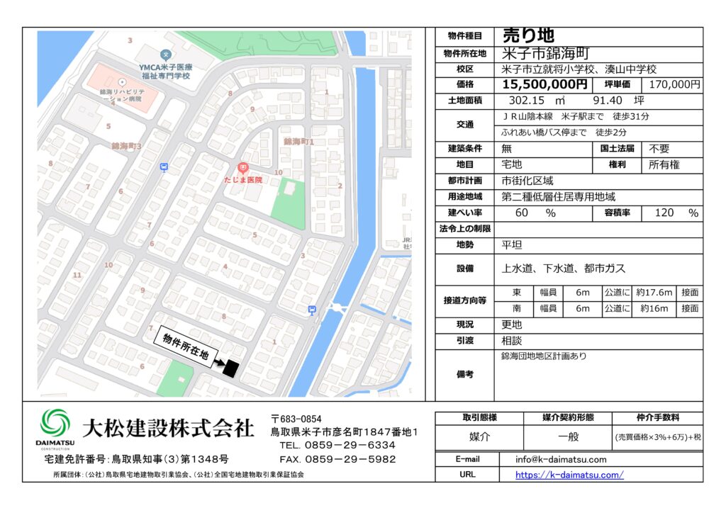 米子市錦海町の土地を販売させていただくこととなりました。